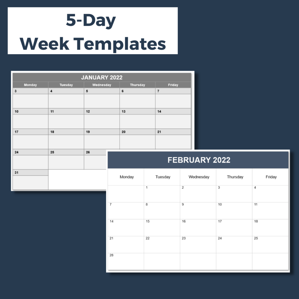 - 5-Day Weeks (Monday through Friday)